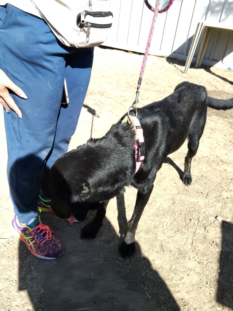 Son histoire : Leta a été récupérée tout près du refuge, elle était dans un local à poubelles à la recherche de nourriture. Elle avait une corde autour du cou mais n’était pas identifiée.