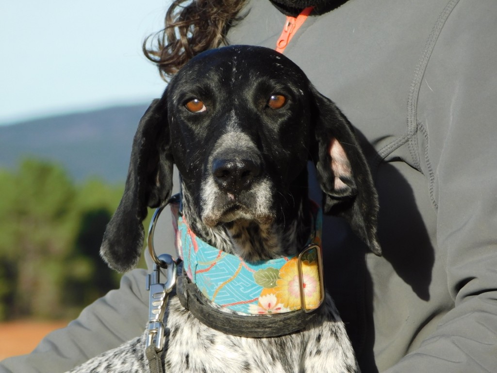 Son histoire : Talon a été secourue par des passants qui savaient comment s'occuper d'un animal abandonné et ont suivi toutes les étapes : abri, nourriture, eau, et vérification de sa puce électronique. L'histoire était étrange : elle appartenait à un chasseur décédé et était « prise en charge » par ses compagnons chasseurs, mais, coïncidence troublante, elle s'échappait toujours et ils ne l'ont jamais recherchée. Ils ont réussi à convaincre la veuve de cette personne de la leur céder.