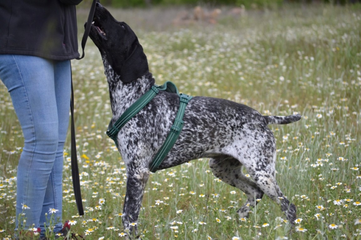Comportement et sociabilité : Charco a eu besoin d'un temps d'adaptation à son arrivée et nous voulions lui laisser suffisamment de temps pour connaître son vrai caractère. Il est arrivé effrayé, il avait peur quand on lui parlait ou qu'on le regardait. Nous avons été très très doux avec lui, en faisant toujours des mouvements lents et en respectant son espace, puis petit à petit, en lui donnant des récompenses tout en lui parlant doucement, progressivement il a compris que nous ne voulions pas lui faire de mal. Aujourd'hui, Charco continue à sursauter quand il entend un bruit par exemple, mais lorsqu'il a peur, nous lui parlons doucement et il se sent rassuré. Il n'est pas en confiance avec des inconnus, mais quand il nous connaît c'est un amour et il nous fait craquer avec ses câlins, avec sa façon de nous sauter après, de nous lécher, de nous chercher du regard. On l'adore ! Charco marche bien en laisse mais parfois il a peur et dans ces moments-là, il nous cherche et se colle à nous. Il est difficile de transmettre avec des mots à quel point Charco est beau, la tendresse qui émane de lui, son regard noble et gentil, ce bonheur de partager tant de bons moments avec lui. Charco est vraiment adorable.