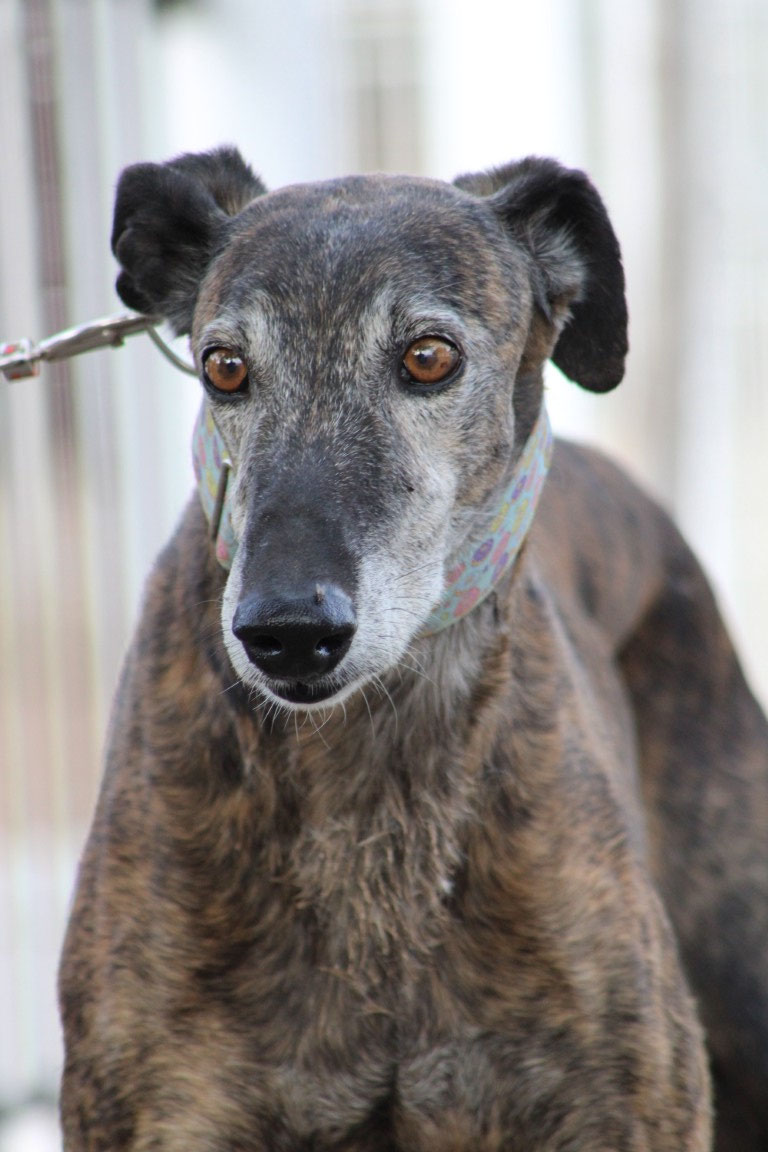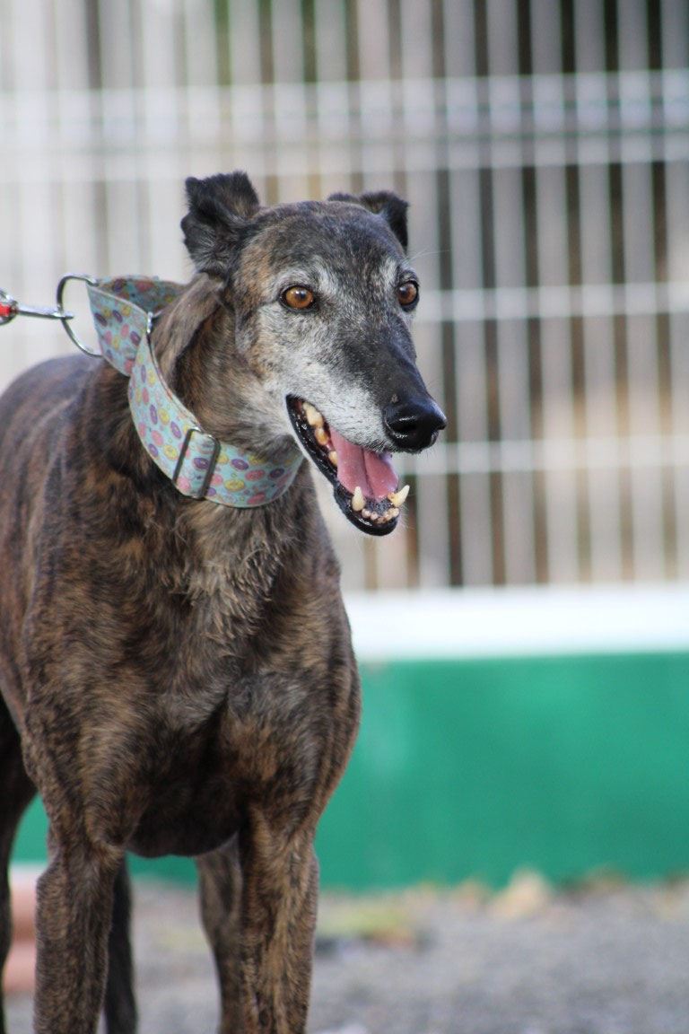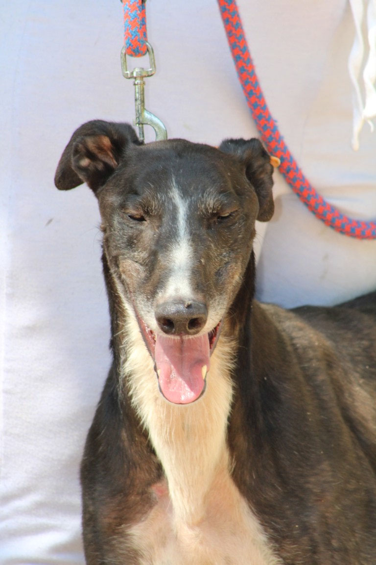 Son histoire : Romerito a été cédé par la veuve d'un galguero avec un autre galgo, Currito . A 9 ans, il n'a jamais connu aucune attention et a toujours dormi dans un chenil...