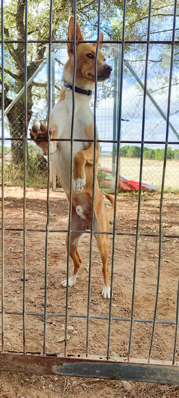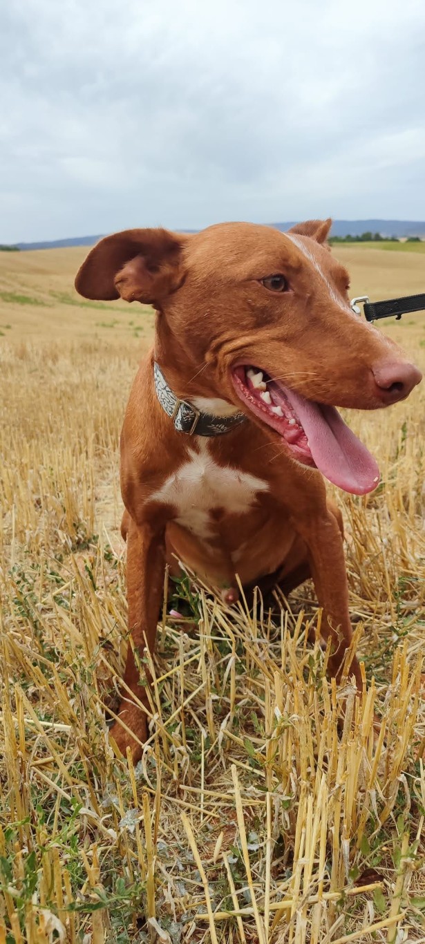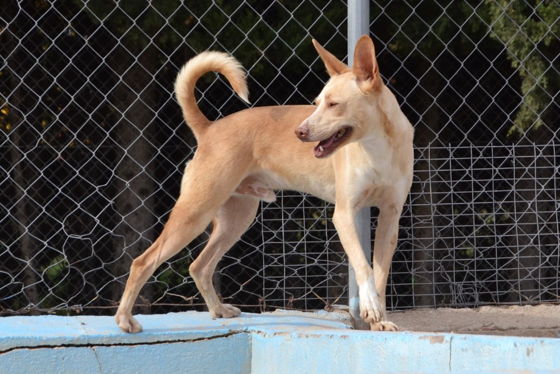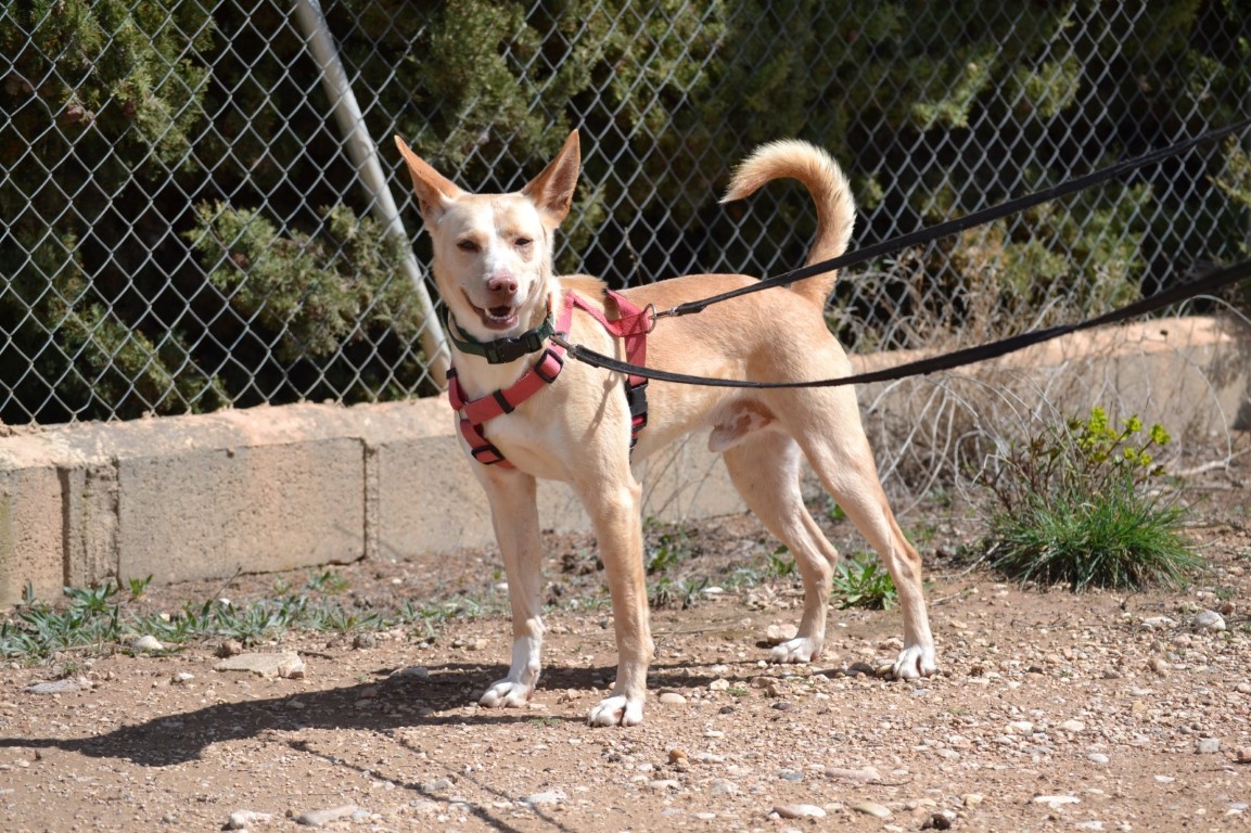 Comportement et sociabilité : Sirio est un podenco qui attire l’attention, il a une allure spectaculaire et élégante, son regard vous hypnotise, il est athlétique, grand, et derrière ce magnifique pelage il n’y a que des muscles : il est magnifique ! C’est un chien qui adore se promener mais il faut faire attention car il a un instinct de chasse bien présent et il est attiré par les odeurs et par le moindre mouvement. Tout, lézard ou oiseau, le fait courir pour s’en approcher. Il n’aime pas beaucoup partager la nourriture ni les jouets. Avec les chiens avec qui il a une grande complicité au refuge, il lui arrive de partager un jouet en tirant chacun d’un côté, sans qu’il n’y ait de problème.Nous faisons les présentations avec les autres chiens mâles avec prudence et avec les femelles, il n’y a pas eu de problème. Il n’apprécie pas beaucoup quand un nouveau mâle intègre le refuge, c’est à force de les voir au travers de la clôture qu’ils apprennent à se connaître et une fois qu’il les connaît tous, il est nettement moins nerveux. A son arrivée au refuge il était en insécurité et il grognait après les mâles, mais comme nous l'indiquions, nous travaillons cela en faisant les présentations petit à petit. Il est un peu méfiant avec les personnes qu’il ne connaît pas mais c’est un véritable amour avec celles qu’il connaît, il se laisse même embrasser et semble apprécier. Il aime les caresses et il suffit de le traiter avec douceur pour qu’il se sente rassuré et perde ses peurs.