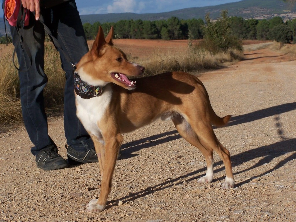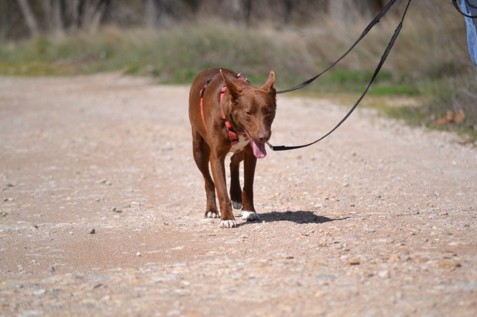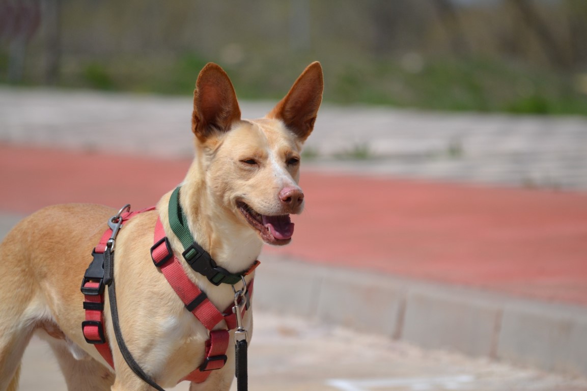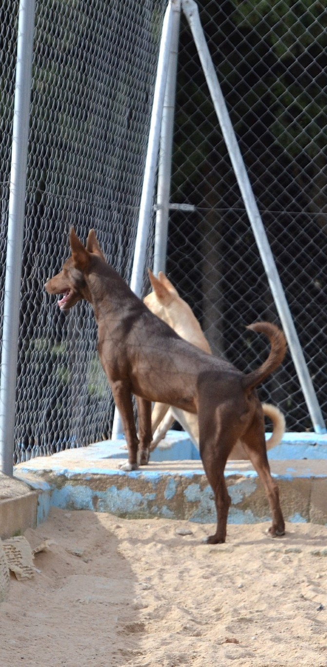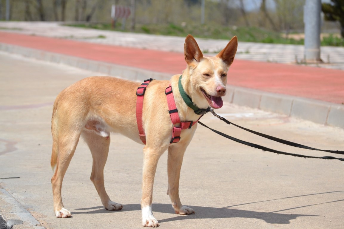 Comportement et sociabilité : Sirio est un podenco qui attire l’attention, il a une allure spectaculaire et élégante, son regard vous hypnotise, il est athlétique, grand, et derrière ce magnifique pelage il n’y a que des muscles : il est magnifique ! C’est un chien qui adore se promener mais il faut faire attention car il a un instinct de chasse bien présent et il est attiré par les odeurs et par le moindre mouvement. Tout, lézard ou oiseau, le fait courir pour s’en approcher. Il n’aime pas beaucoup partager la nourriture ni les jouets. Avec les chiens avec qui il a une grande complicité au refuge, il lui arrive de partager un jouet en tirant chacun d’un côté, sans qu’il n’y ait de problème.Nous faisons les présentations avec les autres chiens mâles avec prudence et avec les femelles, il n’y a pas eu de problème. Il n’apprécie pas beaucoup quand un nouveau mâle intègre le refuge, c’est à force de les voir au travers de la clôture qu’ils apprennent à se connaître et une fois qu’il les connaît tous, il est nettement moins nerveux. A son arrivée au refuge il était en insécurité et il grognait après les mâles, mais comme nous l'indiquions, nous travaillons cela en faisant les présentations petit à petit. Il est un peu méfiant avec les personnes qu’il ne connaît pas mais c’est un véritable amour avec celles qu’il connaît, il se laisse même embrasser et semble apprécier. Il aime les caresses et il suffit de le traiter avec douceur pour qu’il se sente rassuré et perde ses peurs.
