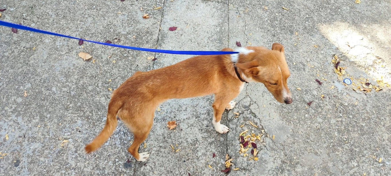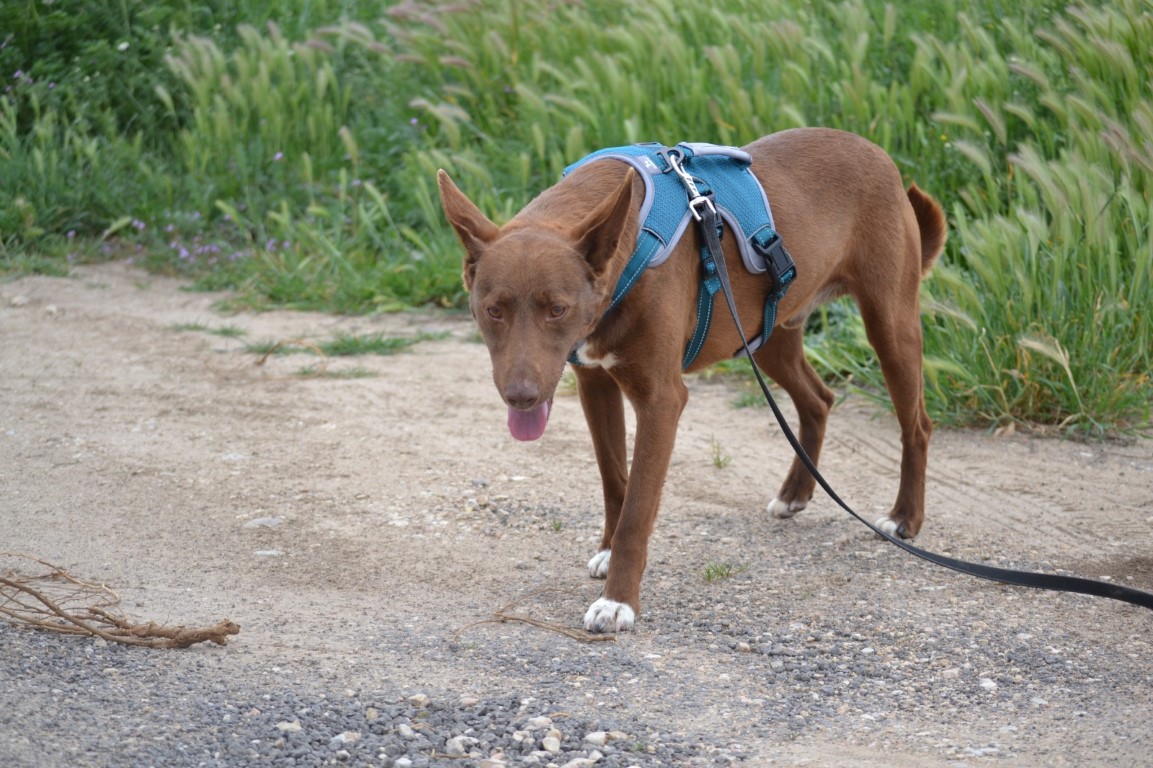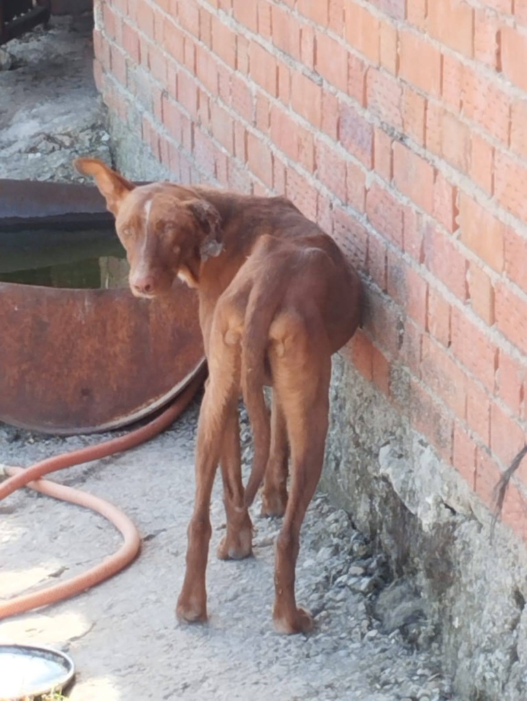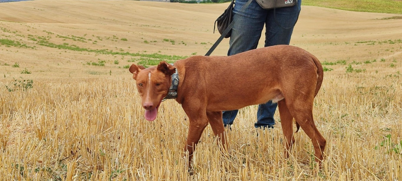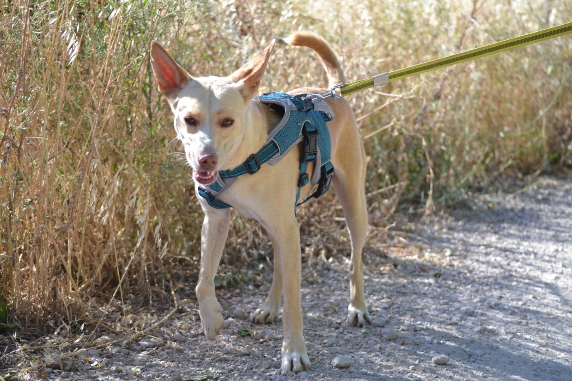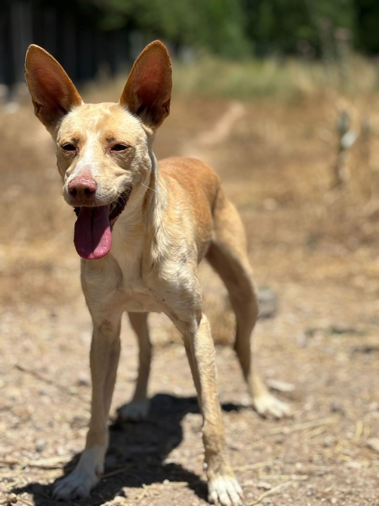 Son histoire : nous avons été informés de la présence d’un podenco abandonné par des villageois. Nous étions assez inquiets car les chiens disparaissent très rapidement dans cette zone, donc nous devions faire vite. Sirio a survécu dans cette zone grâce à son intelligence et sa vigilance.
