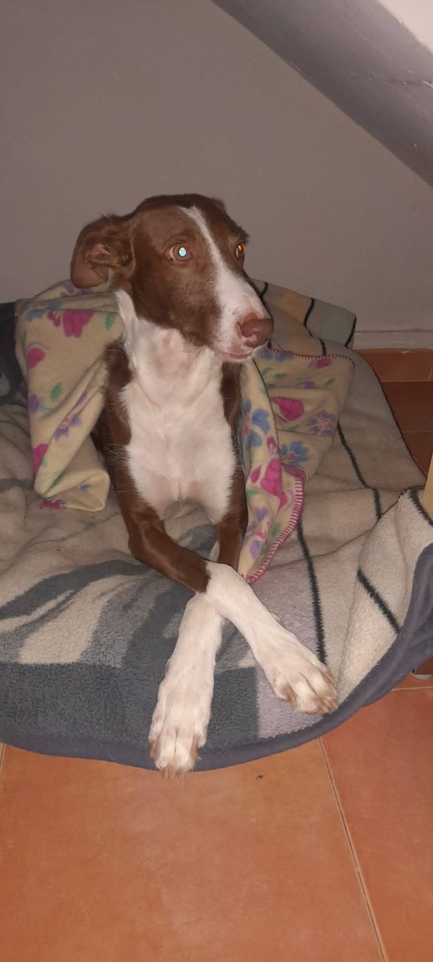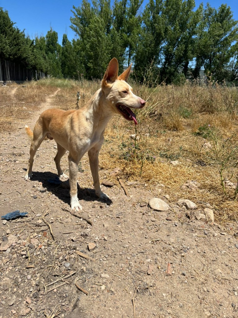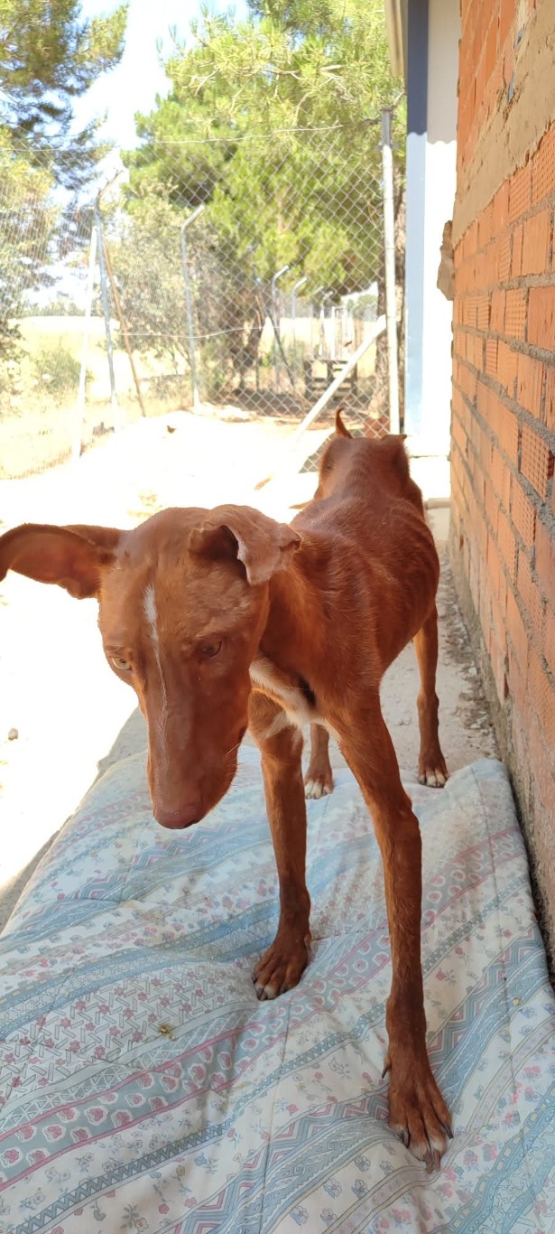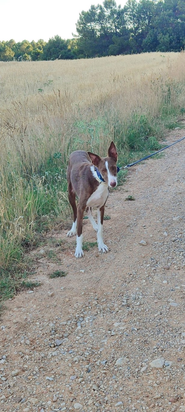 Comportement et sociabilité : lorsque Futur est arrivé au refuge, il n'était qu'un jeune podenco avec un corps marqué par la malnutrition et une âme brisée par la peur. Nous ne pouvions même pas l’approcher : chaque tentative de contact lui rappelait les coups de son passé. Nous l’avons appelé Futur car dès le premier jour, nous avons voulu croire que sa vie pouvait être bien plus que de la misère et de la douleur. Avec une patience infinie et à son rythme, ce diamant brut s'est épanoui. Sa curiosité naturelle et la compagnie des autres chiens du refuge ont été son meilleur remède. Aujourd'hui, Futur est un chien affectueux et joueur dans l'environnement qu'il connaît, s'intéressant même à de nouvelles personnes lorsque ses compagnons lui donnent confiance. Il adore renifler et explorer, ce qui le rend immensément heureux et l'aide à prendre confiance en lui. À l'extérieur du refuge, il peut être plus prudent, et il est normal que certains stimuli l'effraient. Lors des promenades, il se laisse emporter par son instinct d'explorateur : il s'enfonce dans les buissons et les ronces, comme un bon podenco tout-terrain, sans se soucier de se salir. L'un de ses yeux est un peu plus petit et rougit facilement mais il voit parfaitement et cela ne l'empêche pas de profiter de ses aventures. Futur est obéissant et noble : au refuge, il entre dans son box au premier appel et quand il s'excite en jouant, il suffit d’un mot pour le calmer. Il a l'âme d'un chiot, parfois il secoue les couvertures ou mord ce qu'il trouve mais c'est une pure envie de jouer et de vivre. Avec de l'amour, des jouets et des promenades, nous sommes sûrs que dans une maison, il se détendra et deviendra le compagnon idéal. Après tant de manques, il mérite une nouvelle vie, où il ne connaîtra que caresses, longues promenades et après-midi ensoleillés. Futur a montré que, malgré la cruauté, son cœur est toujours ouvert à l'amour.