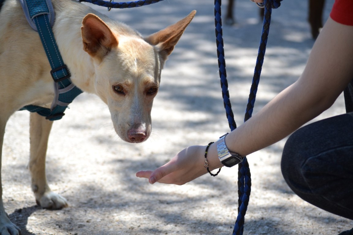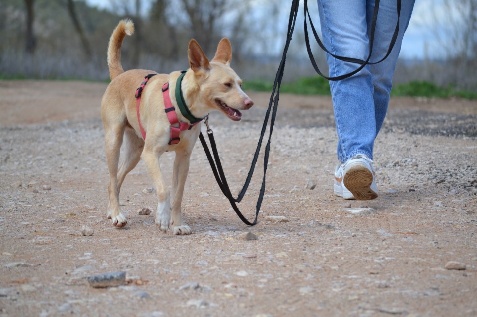 Comportement et sociabilité: Levante est venu à nous en montrant une grande peur. Dès le début, il avait l'air plutôt bien, même s'il reculait visiblement au moindre mouvement à l'intérieur de son box, ce qui indique un passé de maltraitance. Au cours de notre promenade dans la ville, il était parfois nerveux, cherchant un contact étroit. La présence de personnes à distance ne l'a pas inquiété mais il était mal à l'aise quand des groupes de personnes s’approchaient, nous avons donc choisi de les éviter. Nous avons commencé la promenade dans un quartier calme et sommes progressivement montés dans une zone avec plus de personnes et d'autres chiens, et son comportement était, en général, positif. Il mange séparément de sa copine de box, suivant l'indication du galguero sur d'éventuels problèmes de nourriture. Son comportement est impeccable en voiture comme lors des visites chez le vétérinaire. Avec ses congénères, il est joueur et aime beaucoup interagir, même s'il peut parfois être un peu brusque lorsqu'il court. Il a fait preuve d'une belle amélioration et est très calme avec nous. Avec des personnes inconnues, il a besoin qu'elles s'accroupissent lorsqu’elles entrent dans son patio et qu'elles lui parlent doucement. Les caresses doivent être délicates au début, car il est facilement effrayé. La présence de la meute lui donne confiance. Heureusement, une fois qu'il a confiance, il est très affectueux, sautant pour demander des caresses et se frottant à nos jambes pour attirer l'attention. Lors de la présentation avec un chat habitué aux chiens, sa réaction n'a pas été positive : il ne pourra pas cohabiter avec un chat.