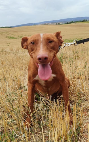 Comportement et sociabilité : Sirio est un podenco qui attire l’attention, il a une allure spectaculaire et élégante, son regard vous hypnotise, il est athlétique, grand, et derrière ce magnifique pelage il n’y a que des muscles : il est magnifique ! C’est un chien qui adore se promener mais il faut faire attention car il a un instinct de chasse bien présent et il est attiré par les odeurs et par le moindre mouvement. Tout, lézard ou oiseau, le fait courir pour s’en approcher. Il n’aime pas beaucoup partager la nourriture ni les jouets. Avec les chiens avec qui il a une grande complicité au refuge, il lui arrive de partager un jouet en tirant chacun d’un côté, sans qu’il n’y ait de problème.Nous faisons les présentations avec les autres chiens mâles avec prudence et avec les femelles, il n’y a pas eu de problème. Il n’apprécie pas beaucoup quand un nouveau mâle intègre le refuge, c’est à force de les voir au travers de la clôture qu’ils apprennent à se connaître et une fois qu’il les connaît tous, il est nettement moins nerveux. A son arrivée au refuge il était en insécurité et il grognait après les mâles, mais comme nous l'indiquions, nous travaillons cela en faisant les présentations petit à petit. Il est un peu méfiant avec les personnes qu’il ne connaît pas mais c’est un véritable amour avec celles qu’il connaît, il se laisse même embrasser et semble apprécier. Il aime les caresses et il suffit de le traiter avec douceur pour qu’il se sente rassuré et perde ses peurs.