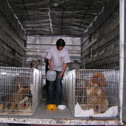 Nous chargeons les chiens dans les cages...moments difficiles pour Mercédès, Véronica et tous ceux qui ont donné de leurs temps et leur amour à tous nos protégés !!!