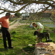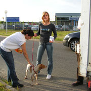 Evelyne et son mari étaient venus de Toulouse pour emporter Manchas, Fly, Pachon, Simba, Amon(bb galgo) , et 2 chiots pour l'autre asso.