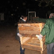 Nous découvrons l'abri de chantier récemment acheté et y entreposons les dons.
