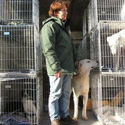 Samedi, à 7h30 nous sommes au refuge pour remonter toutes les cages et charger les chiens. Nous reconnaissons Karina, la mastine, toujours aussi brave, qui nous fait pitié avec son glaucome