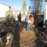 Dimanche matin 8h... la nuit a été courte. Il a fallut s'occuper des 22 chiens qui passaient la nuit ici. Détente dans le jardin, preparation des "lits" avec une bonne couverture pour chacun,