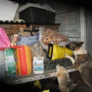 Nous laissons au refuge des nombreux manteaux confectionnés par de généreux donateurs : 50 manteaux de toutes tailles réalisés par la famille de Pascale + 3 grandes niches plastiques