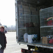 Dimanche 9h, Evelyne est là pour le covoiturage vers l'est . Elle prend Tono, Jara, Prada, Nuka, Charanga et un chiot, qu'elle porte jusqu'à Béziers, puis Frederique covoiturera jusqu'à Nimes