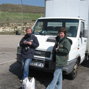 Il fait chaud deja et Roland profite du soleil... il part dans quelques instants pour la Belgique...