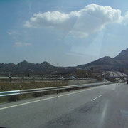 Plus loin, un chien accidenté sur le bord de l'autoroute, la guardia civile est là... des souvenirs reviennent : une petite galga noire il y a tout juste un an percutée devant nos yeux sur l'autoroute... tristesse...