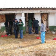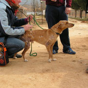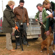 ! Pendant que nous attendons Luna, une fourgonnette s'arrête. Deux galgueros en descendent avec deux galgos et une setter très maigre... ils viennent au refuge les abandonner là.