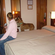 Le petit père a été adorable et super bien élevé, pas bougé de la nuit, ni pleuré, ni même tenté une approche sur le lit ! Nous n'avons pas trahi nos propos au gardien de l'hotel un peu réticent à qui nous avions certifié que notre "petit chien" était très sage et habitué aux hotels !!!!