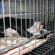 Il est temps de charger nos toutous : nous les installons confortablement dans les cages.