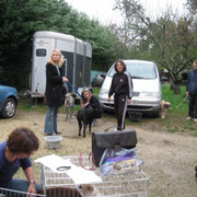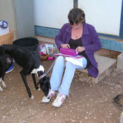 Christine est arrivée avec 2 amies, de Valencia pour nous porter Duna, Kobi, Fricky, Fanny et Meg (arrivée du refuge d'Asoka d'Alicante la veille chez Christine).