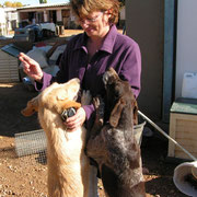 Veronique et Béatrice, deux amies très investies pour nos petits sont là pour aider au déchargement des chiens, avec une de leurs amies... super, on a besoin de mains pour sortir nos 34 toutous