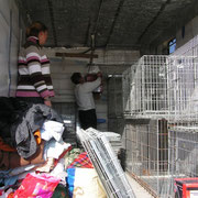 Une fois les dons déchargés, nous montons nos cages dans le camion.