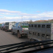 Sur le chemin qui mène au refuge, une rehala se prépare (chasse au sanglier avec meute)... des dizaines de voitures avec des remorques à chiens remplies de podencos pour la plupart attendent la partie de chasse... il y a là de nombreuses meutes venant de partout, et c'est une centaine de chasseurs qui va bientot lancer les chiens sur les sangliers et cerfs du secteur... Nous avons le coeur serré en croisant les regards de ces malheureux....