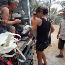 Et voilà le moment le plus riche en émotions sûrement, de l'embarquement de nos 18 passagers, protégés et privilégiés, un à un, avec bisous, tendresse, et surtout beaucoup d'émotions, ils quittent les bras protecteurs de leurs anges gardiens et rapidement passent les divers contrôles d'identité avant de prendre leur place dans les différentes cages qui leur sont attribuées.