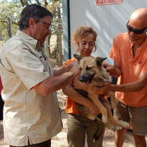 Regards, poignées de mains, bises avec les bénévoles, sans qui rien ne serait possible et qui sont les petites mains qui balaient, nettoient, lavent, entretiennent et surtout cajolent tous les pensionnaires, leurs donnent à manger, à boire, toujours de l'eau propre dans les piscines pour faire trempette, une caresse par ci, un câlin par là et aussi des soins attentionnés pour ceux qui sont malades.Tous ces bénévoles méritent mon attention et mon admiration.
