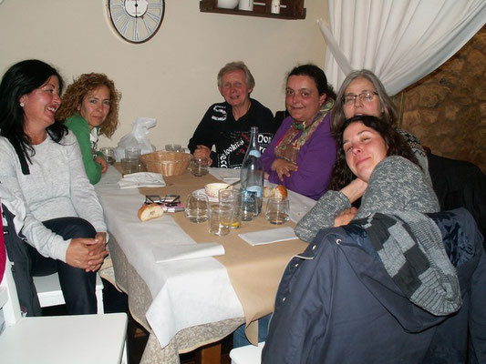 Nous nous sommes relayées au volant et tout se passait bien. Papotages de rigueur ! Nous avons fait une pause à l'endroit où nous nous étions arrêtées en septembre 2014 lors de mon précédent voyage. A l'époque j'avais ramassé des amandes et du thym. Là j'ai pris du thym qui commençait à fleurir et du romarin, tout ça à l'état sauvage. Nous en voyions plein le long des routes allant à Terruel et le thym sent merveilleusement bon. Rien à voir avec celui que j'ai dans mon jardin. Puis nous avons filé vers Chillaron de Cuenca où se trouvait notre hôtel. Très sympathique. Puis les filles de Cuencanimal sont arrivées. j'ai donc revu Puri et Marijosé qui s'occupait de Gonso au refuge. Très heureuse d'avoir des nouvelles. Veronica est arrivée ensuite et elles nous ont emmenées au restaurant dans le vieux Cuenca sur les hauteurs. Dommage il faisait nuit mais la vieille ville est très belle. Avant nous nous étions arrêtées à un stand de vente de livres d'occasion tenus par Costan, autre bénévole du refuge dont j'ai fait la connaissance et ces ventes permettront au refuge de se faire un peu d'argent pour nourrir et soigner les toutous. J'avais dit lors de mon dernier voyage que je voulais perfectionner mon espagnol et je ne l'ai pas fait et c'est vrai que c'est dommage car je ne pouvais pas échanger comme je l'aurais voulu et je devais passer par Anne, qui maîtrise parfaitement cette langue. De beaux moments de convivialité. Puis Veronica nous a ramenées à l'hôtel à plus d'une heure du matin.