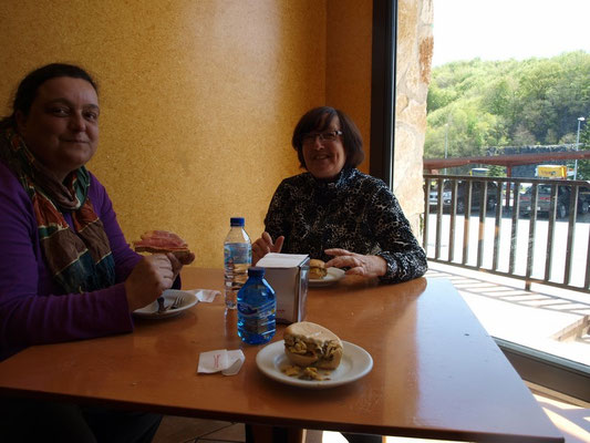 Ce fut un beau voyage comme à chaque fois. Nous sommes donc parties vendredi matin avec Corinne vers les 7 h de Mazarin, direction Agen où nous devions prendre Anne qui s'était rendue chez Isabelle car celle-ci lui gardait sa toutoune Macu. Et nous avons pris la direction de l'Espagne. Beau temps pour rouler. Nous nous sommes arrêtées vers les 13 h pour déjeuner.
