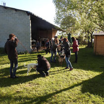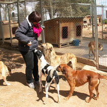 Petit déjeuner vers les 9 h avant de vérifier les passeports. Puis direction le refuge vers les 11 h. Je m'étais dit que c'était la troisième fois et que je ne ressentirai pas cette émotion qui m'avait envahie les deux fois précédentes. En septembre 2014, je savais que j'allais revoir Gonso. Là pas de toutou coup de coeur et pourtant, ça a commencé à serrer quand Corinne a pris le chemin peu carrossable et j'étais très émue. Revoir les filles, revoir les toutous, le refuge. Les bénévoles finissaient de nettoyer les patios et une fois fini, nous avons pu y pénétrer et enfin toucher tous ces toutous que je côtoie au quotidien grâce à la gestion du site internet de l'association. Certains en totale liberté, d'autres dans les grands espaces de chaque patio et quelques-uns dans les enclos. Que dire, j'étais assaillie par tous car dans mes poches se trouvaient des friandises. Avec les toutous, j'ai eu un succès fou. J'ai revu Wolfa qui est venue se frotter contre le grillage de son enclos pour que je la caresse. Combien de temps encore avant qu'un regard bienveillant se pose sur elle ? Et Taram, Bertillo, Jonan et Amaia, Emi, Tex et tous les autres. La petite Lala, adorable, câline. Et cette toutoune, sauvée de maîtres qui la tenaient attachée avec une chaîne si serrée qu'elle a dû être opérée pour enlever les maillons inscrustés dans sa chair. Elle sera bientôt proposée à l'adoption.