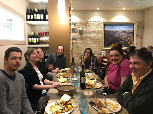 Maria-Jose a vu arriver le camion comme elle habite dans la même rue et nous rejoint tout de suite, Veronica arrive dans la foulée et nous partons au restaurant dans la ville basse de Cuenca où nous retrouvons avec grand plaisir comme toujours, Maria, Ines et Alejandro, un autre bénévole.